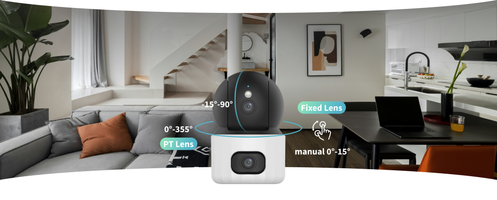 عدسة مزدوجة: ثابتة ومتحركة لتغطية شاملة.