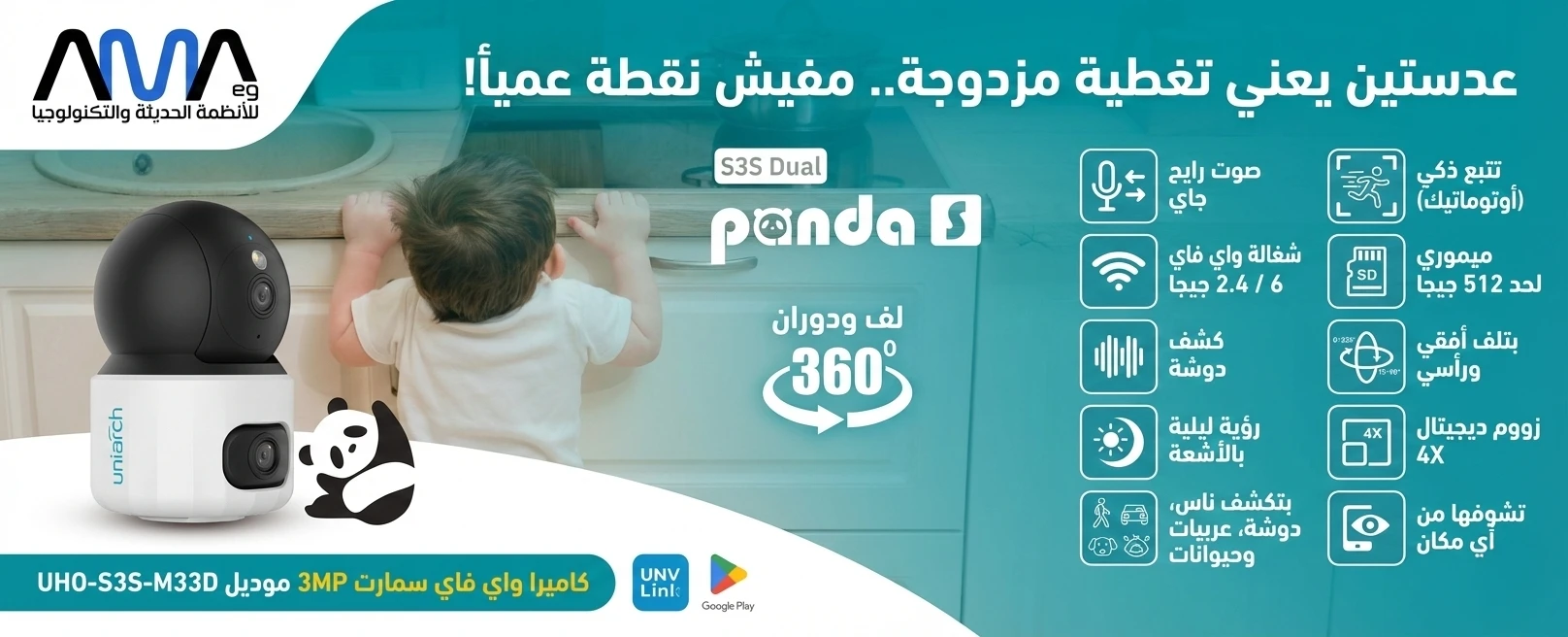هل تحتاج لمراقبة الغرفة بالكامل وفي نفس الوقت تتبع حركة الأشخاص؟ سابقاً كنت تحتاج لكاميرتين، لكن الآن مع Ama EG، نقدم لك الحل العبقري: Uniarch Uho-S3S-M33D.